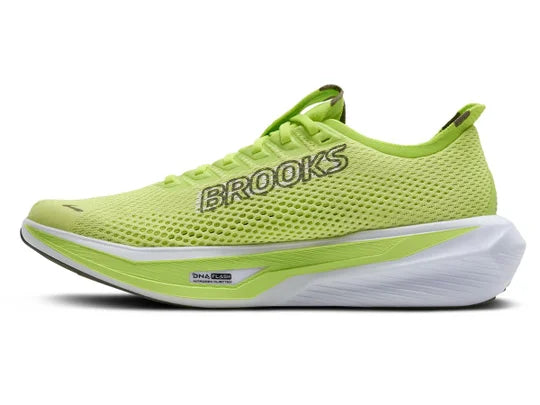 The Brooks Hyperion 3 is engineered for speed, ideal for races up to 10K and high-tempo training sessions. Its renewed DNA FLASH v2 midsole, infused with nitrogen, delivers responsive energy return and a springy ride without sacrificing cushioning for comfort over medium to long distances. The lightweight warp knit upper enhances breathability and provides targeted support, while the gusseted tongue ensures a secure, snug fit. Designed for competitive runners, this shoe offers the perfect balance of speed, comfort, and performance. A favourite among Hyrox competitors.
